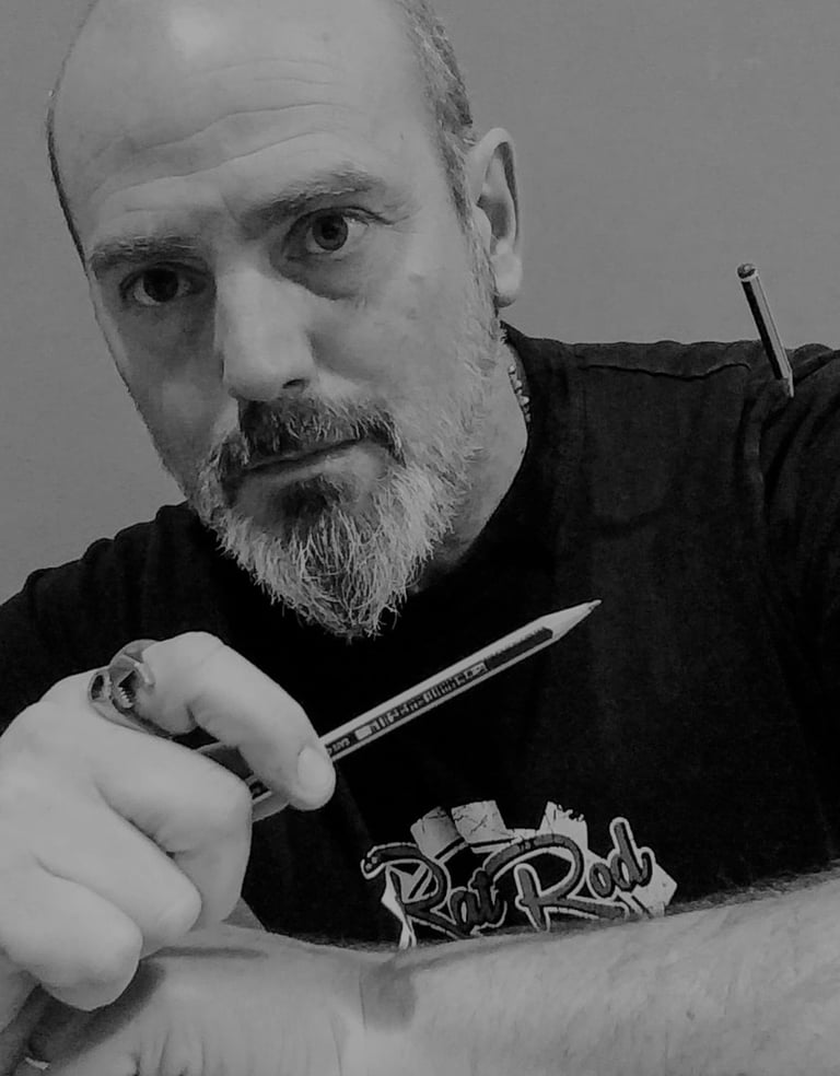El dibujo y el automovilismo forman parte de mi historia desde siempre. Mi trabajo se desarrolla dentro del hiperrealismo, con una atención especial al detalle, los materiales y la técnica.