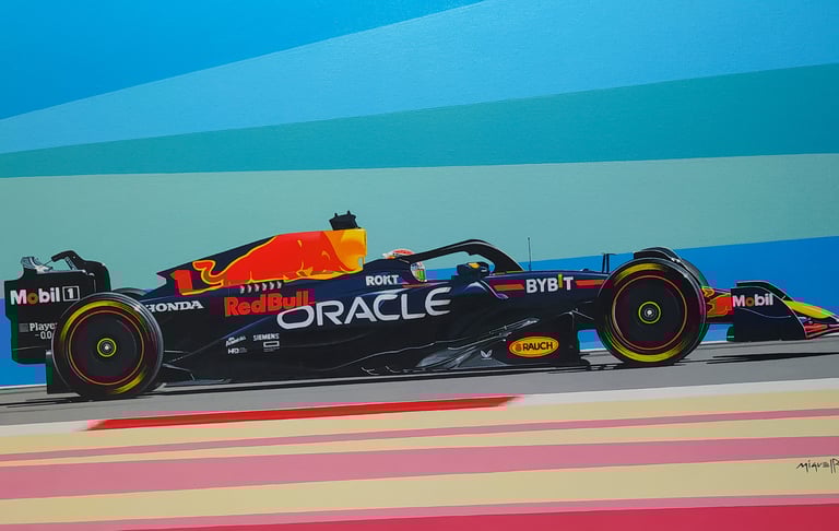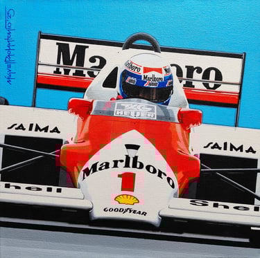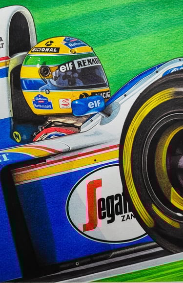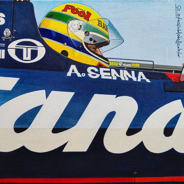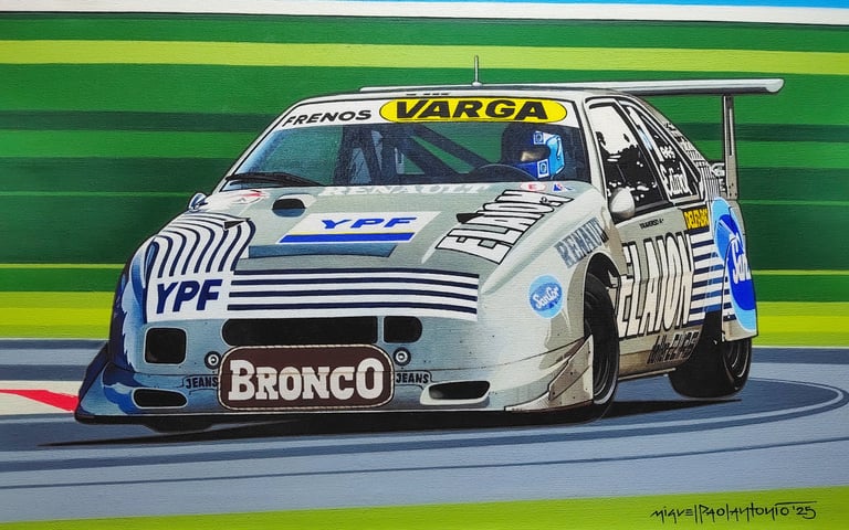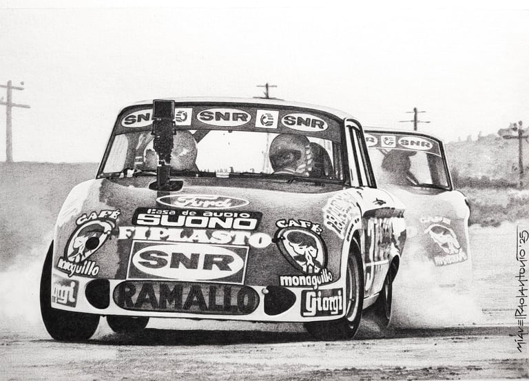 Realizo dibujos con lápices de grafito, policromos y acuarelables, y pinturas acrílicas sobre tela. En cada obra busco transmitir la pasión, la identidad y los momentos que marcaron al automovilismo.